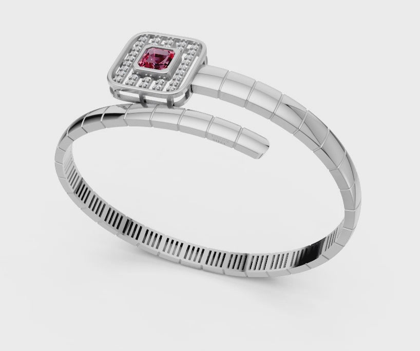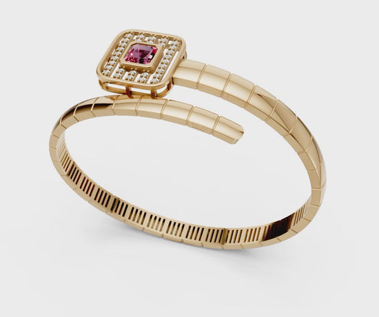 The Lineage Bangle in 18kt gold, natural white diamonds and pink tourmaline.