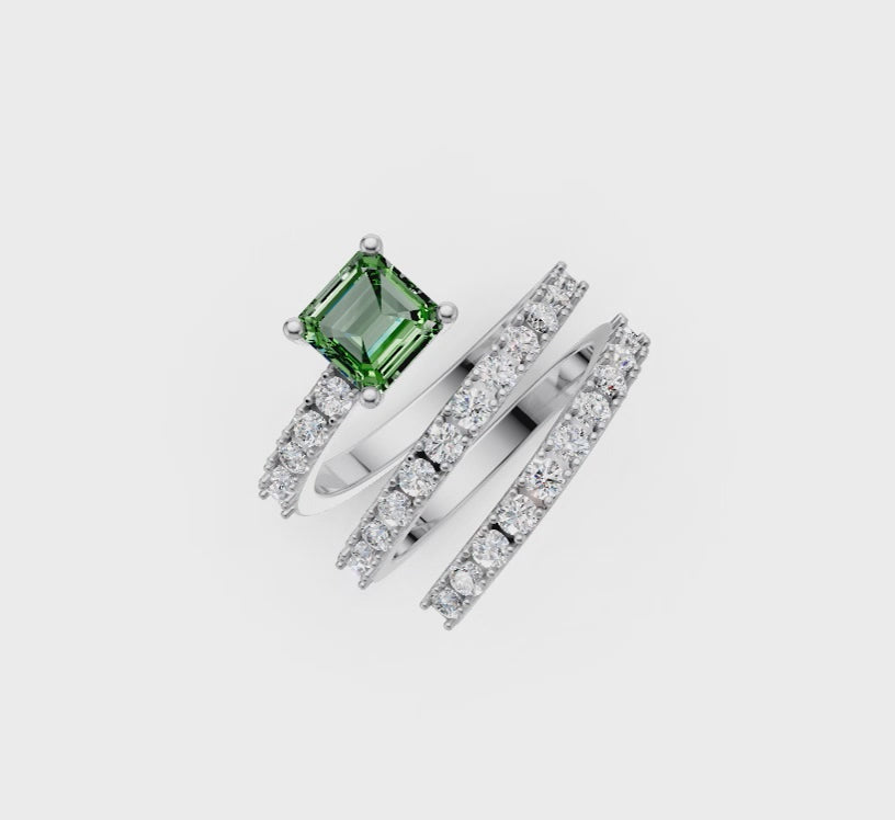 - Gemstone: approx. 0.60ct Asscher cut green tourmaline